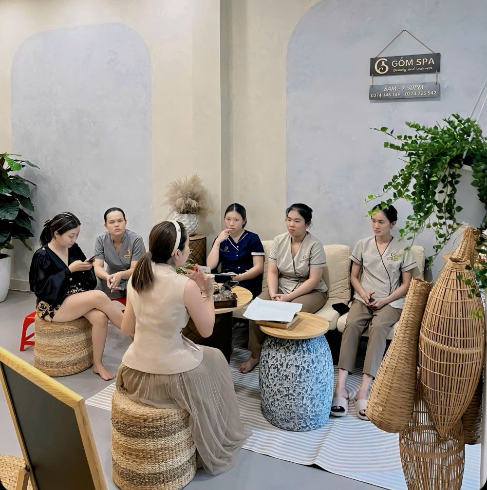 Không gian học tập tại Lotus Spa luôn tạo cảm giác thư giãn, gần gũi nhưng vẫn đảm bảo tính chuyên nghiệp. Học viên được thực hành trong môi trường đúng chuẩn spa thực tế.